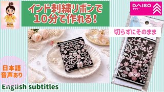 10分制作!DAISOインド刺繍リボンを切らずに作る!I made a pouch without cutting it with DAISO Indian embroidery ribbon