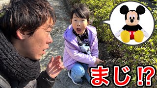 公園でミッキー落ちてる⁉️ここちゃんの指さす方向にあったのが・・・・・・・😨💦